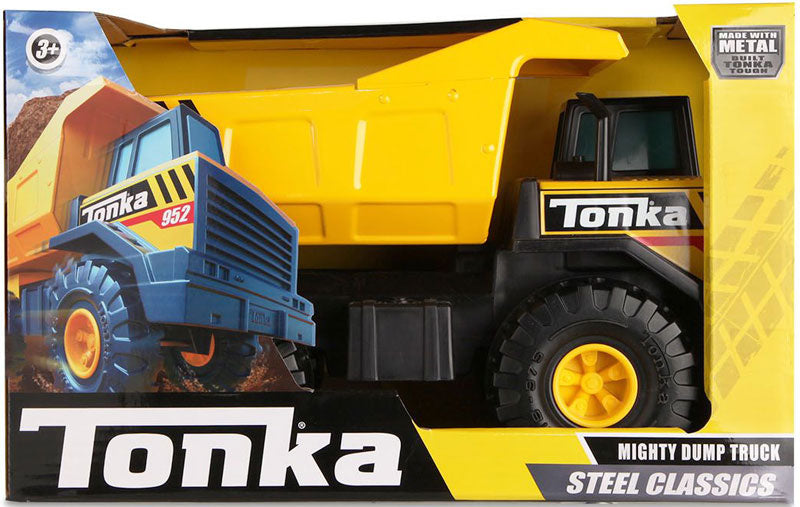 Description: The Tonka Steel Classics Mighty Dump Truck is built for hauling! This sturdy, steel construction vehicle is ready for the toughest loading jobs. Move the bed up and down to trigger its unloading action! Constructed Tonka tough with real Steel! Appropriate for ages 3 years and up.